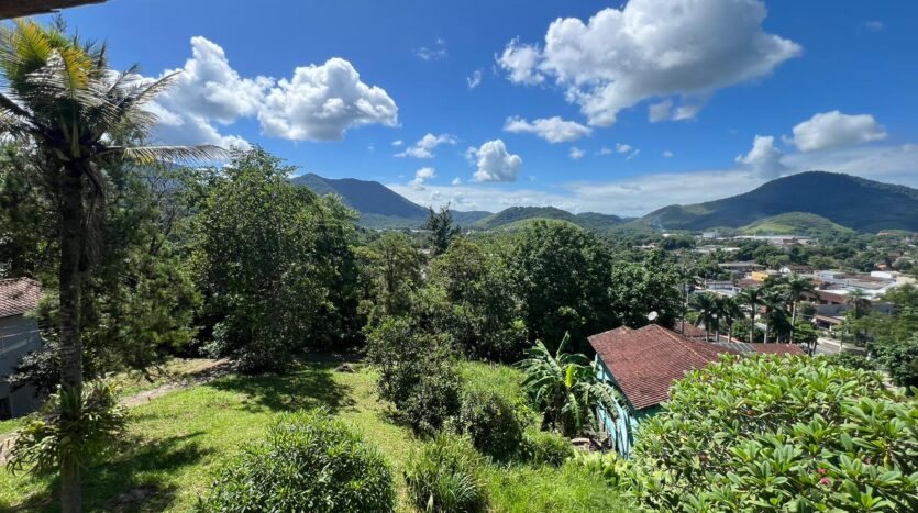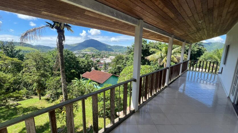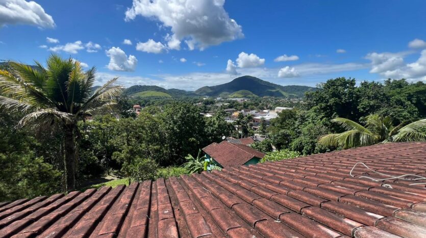 Casa com 4 quartos (sendo 1 suíte), 2 banheiros, sala, cozinha em conexão com a sala. Além de ter varanda na parte de baixo, sacada no 2º andar com uma vista linda para a cidade de Guapimirim.