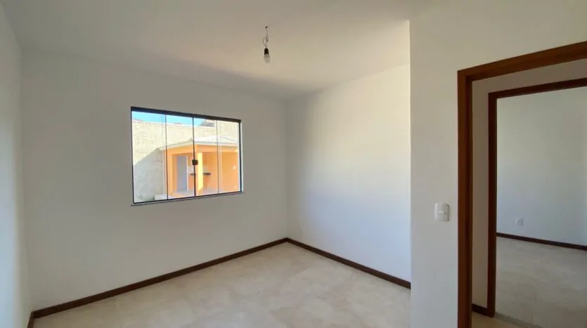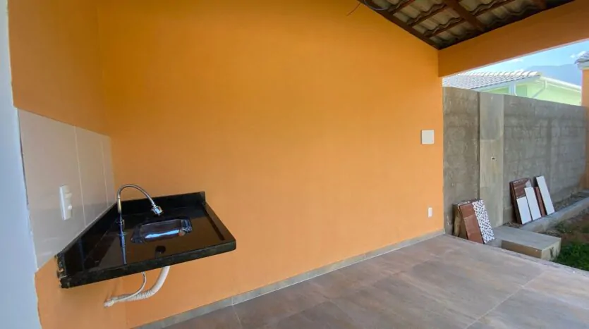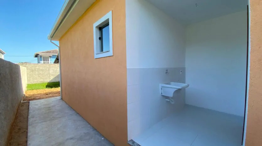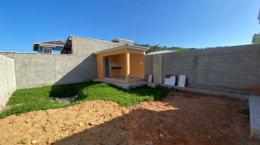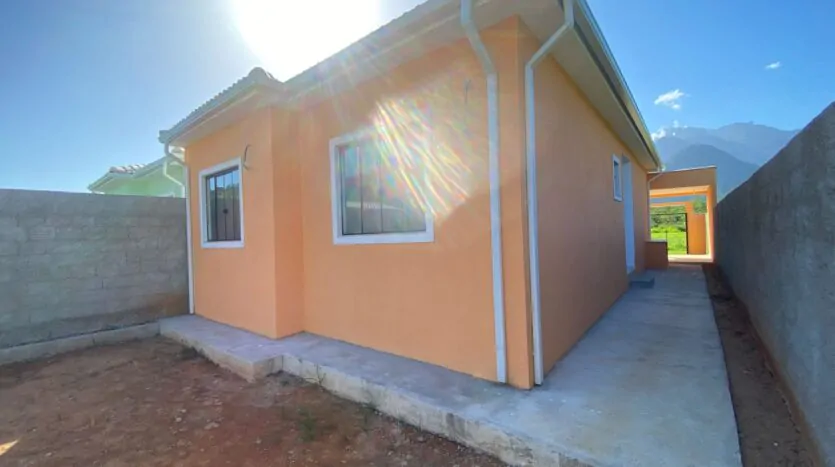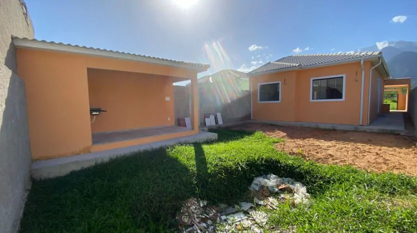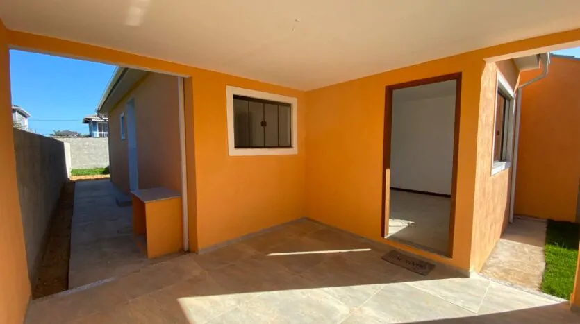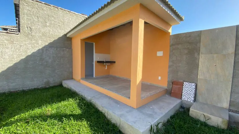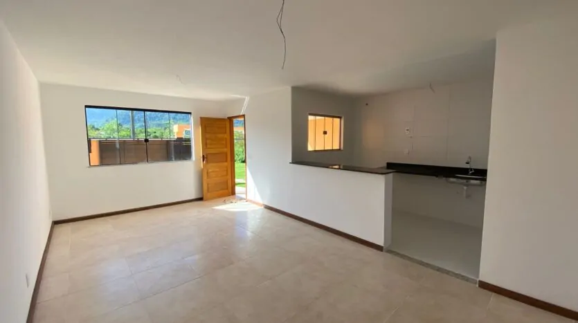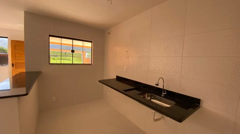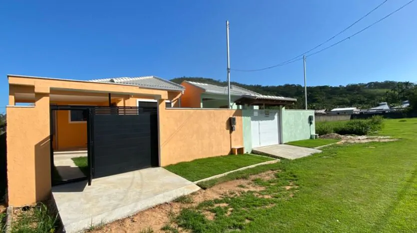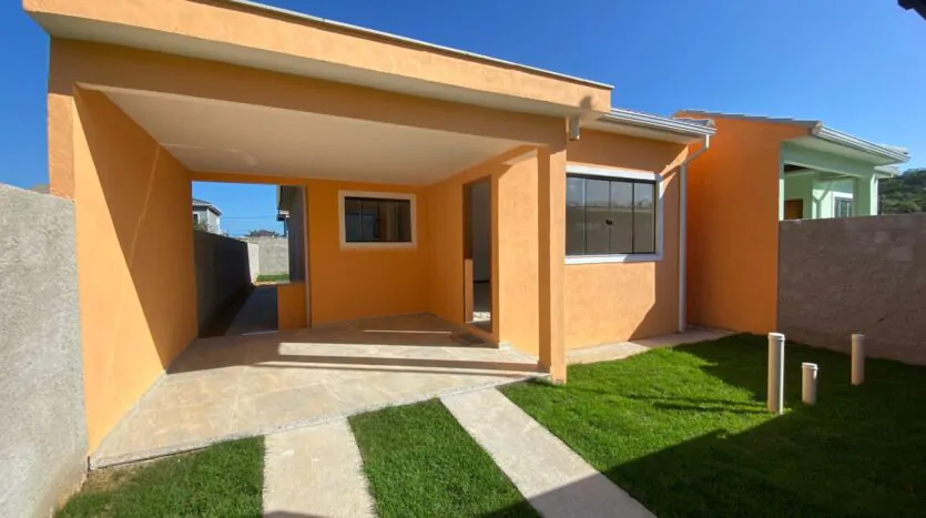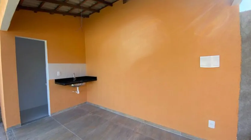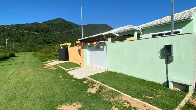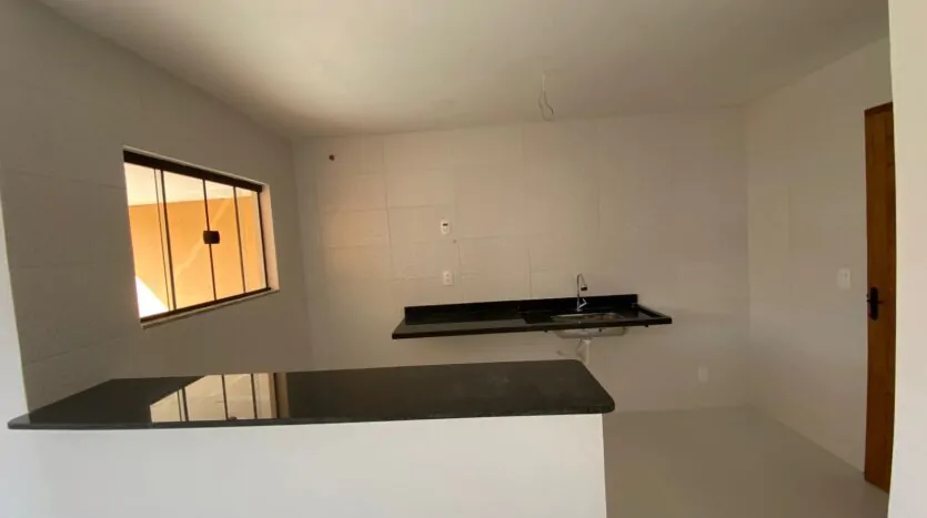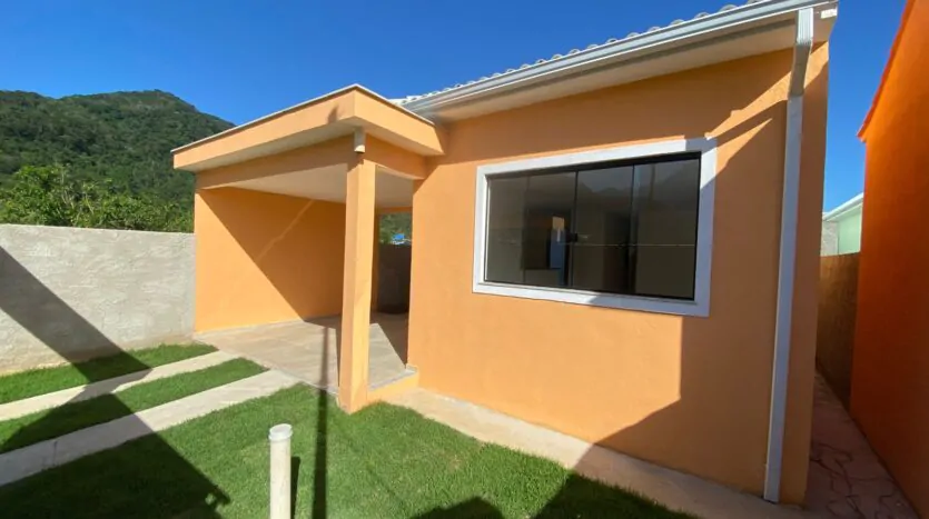 Casa com 2 quartos (sendo 1 suíte), banheiro, sala grande e cozinha em conceito aberto, edícula, quintal, varanda e área de serviço. Casa cor verde.