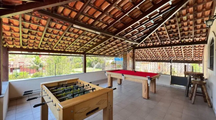 Condomínio com portaria 24h, lazer completo com piscina de água natural, lago, campo de futebol, quadra poliesportiva, playground, sauna, churrasqueira e muita área verde.
