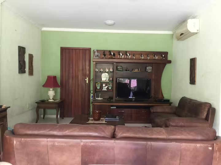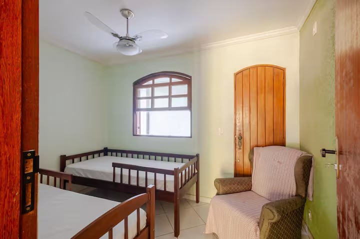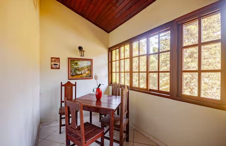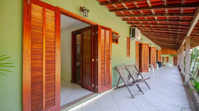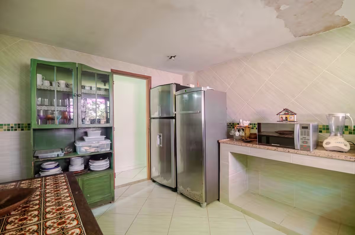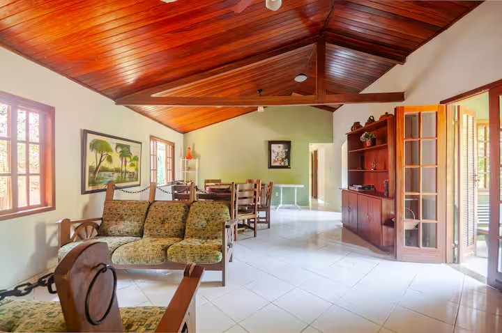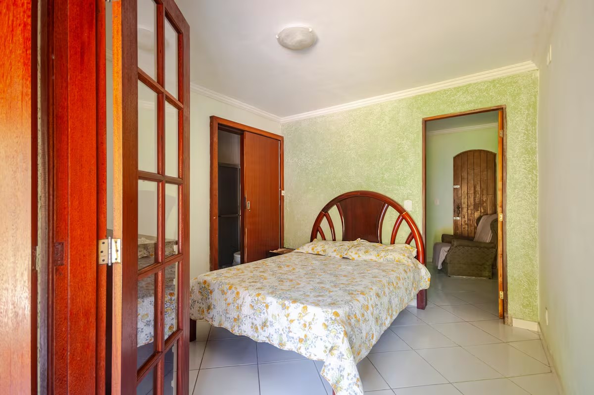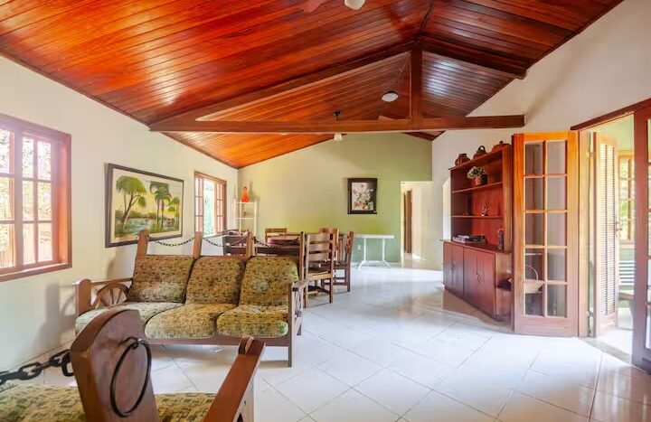 O Sítio conta com 8 quartos (sendo 4 suítes), 6 banheiros, sala de estar, sala de jantar, cozinha, varanda, sacada, salão de jogos com totó, sinuca…